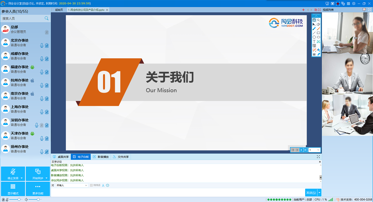 網(wǎng)會科技是中國領(lǐng)先的遠程視頻會議軟件以及視頻會議系統(tǒng)、網(wǎng)絡(luò)視頻會議全面應(yīng)用解決方案的供應(yīng)商.產(chǎn)品涵蓋軟硬件視頻會議系統(tǒng)、視頻智能錄播系統(tǒng)等 請撥400-004-0268。